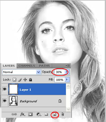 Jika sudah…,buatlah Layer Baru dan warnai dengan warna Putih. Atur Opacity layer tersebut menjadi 30%.
